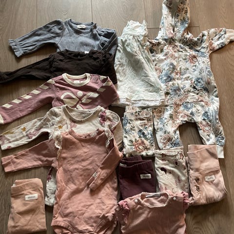 Her i huset tørketromles det, så plaggene er "ferdig krympet" sånn sett:) Synes det tidvis er stor forskjell i str fra de ulike produsenter, og min erfaring er at Newbie, Cubus, Zara og tidvis H&M kan være litt små i str. (spes. i bena og ryggen), mens Polarn O. Pyret, NoaNoa og Lindex er litt romsligere. I denne pakken er klær fra bl.a. Lindex, H&M, Polarn O. Pyret, NoaNoa, Reflex, Petit bateau. Woolland, Cathrine Hammel, NameIt.