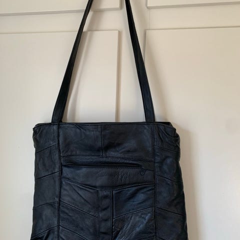 Vakker skulderveske i Magnolia-serien fra Pia Tjelta. Kraftig sort silkefløyel med broderier. Nypris var 1500 kr.