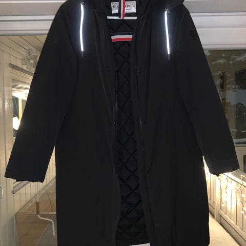 Jean Paul Vinterjakke i størrelse M for kvinner. Jakken er svart og har en fyldig, polstret design med hette som har pelskant. Egnet for vinterbruk med god isolasjon og lengde som dekker overkroppen.