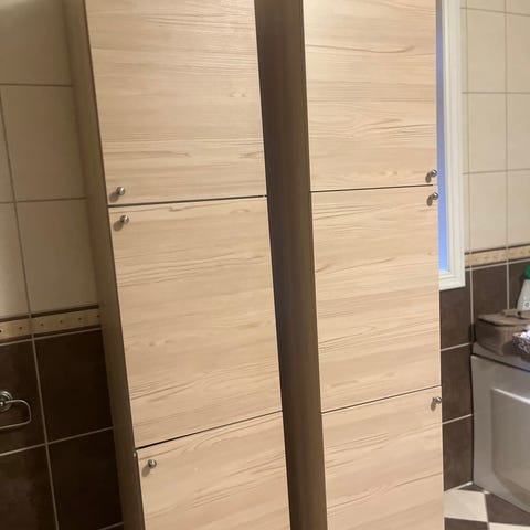 2 x IKEA Flåren baderomsskap i hvit selges. Disse skapene har et klassisk, landlig design og er utmerket for oppbevaring på badet eller et annet rom. Hvert skap har en praktisk skuff øverst og en skapdør med rutete/frostet glass og justerbare hyller i den nedre delen.