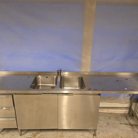 Med 1stk blandebatteri og veggfeste til vasken. Bredde: 120 cm. Dybde: 45 cm.