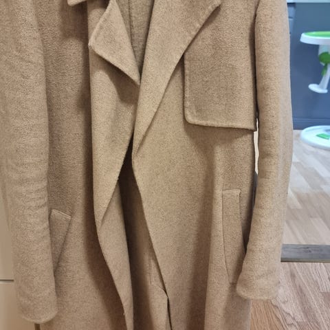 Brun kåpe, beige, frakk, vinterjakke, mønster, peacoat, høstjakke, ull, varm,