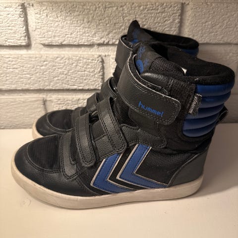 Hummel Barne tøfler i størrelse 34, laget av grå filt materiale. Passer for både gutter og jenter. Tøflene har en gummisåle med mønster for bedre grep. Egnet for innendørs bruk.