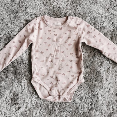 Reflex body i størrelse 80 for jente. Bodyen er hvit med lange ermer og krage i hals.