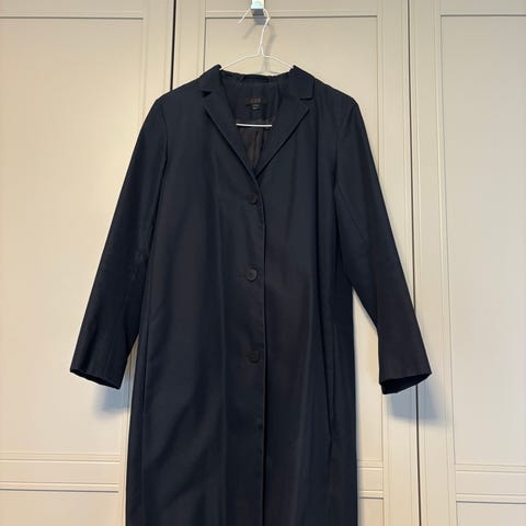 Pent brukt jakke/frakk/kåpe i mørk blå. Tynt foret.