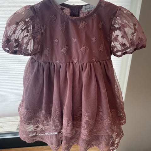 Newbie kjole med tyll i str. 62. Fin til jul. Plommerød med blomstermønster.