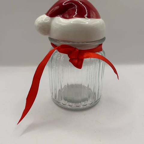 Krukke i glass / flaske / vase med nissemotiv