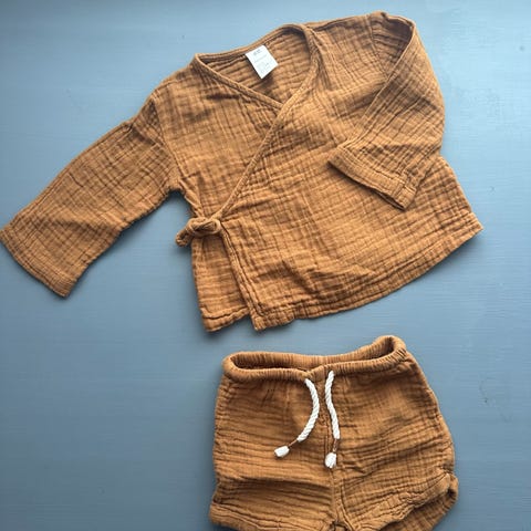 Pent brukt sett fra Newbie, størrelse 74 cm. Kan brukes lenge ettersom bodyen har to rader med knapper mellom bena og kan tilpasses i størrelse. Like fin til gutt og jente. Sender gjerne!