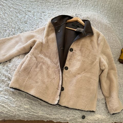 Superfin fuskepelsjakke selges. Str 40/M. Lite hull inni den ene lommen, men ingenting som synes.