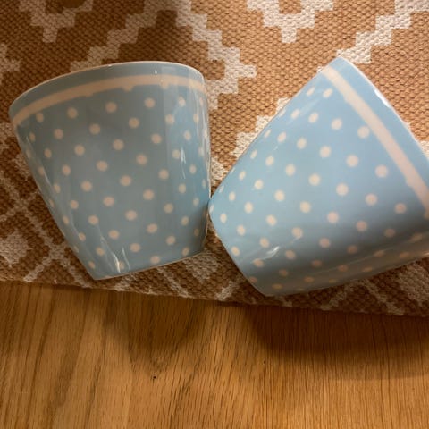 GreenGate Blomstret Keramisk Krus i lyseblå med rosa og røde blomster. Krusene har en rund form og er laget av keramikk. Passer til daglig bruk for drikkevarer som kaffe eller te. Ingen riper eller skår, de har stått til pynt i skap, selges 75,-pr stk
