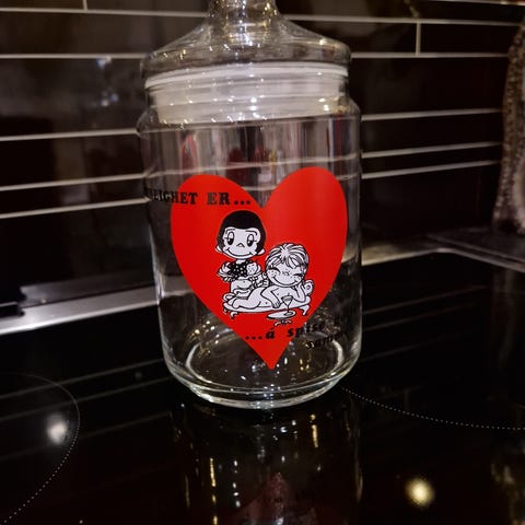 To fine 80 talls lyserosa krukker kjeks syltetøy
