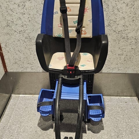 Kjekt sykkelsete som festes foran på sykkelen.