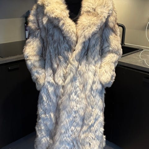 Lang pelskåpe - Pelsen fremstår som reveskinn. Ingen merking, så type pels kan ikke garanteres.