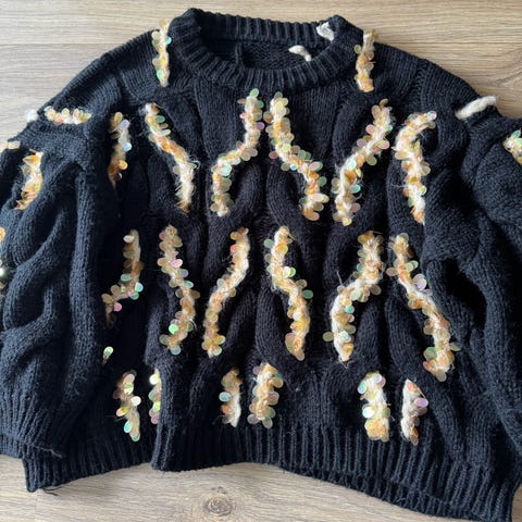 Helt ubrukt genser med paljetter fra na-kd. Størrelse 40. Lappen fortsatt på. Veldig fin til vintersesongen!