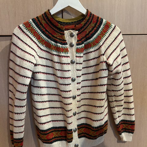 Veldig fin ubrukt hjemmestrikket jakke strikket med mini alpakka ull str S (sandnes garn) selges hbo 850,- da den ble for liten til meg. Det mangler knapper, men det er laget hull til for knappene slik at kjøper kan velge selv. Jeg kjøpte ikke inn pga at jakka ble for liten.
