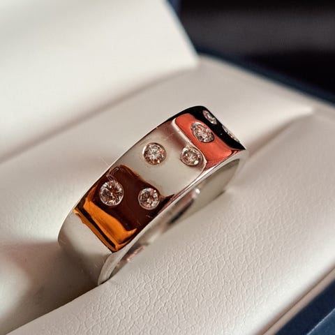Karat 14. vekt 2,57 gram. Ring vegt på vekt hos gull oppkjøper.