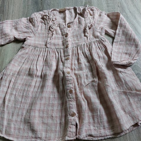 Lil'Atelier Barley kjole i gul farge for barn i størrelse 116, til jente. Kjolen har langermet design og er laget av et tekstil med broderte hullmønstre som gir et dekorativt uttrykk. Knappelukking på baksiden. Passer til hverdagsbruk og lette anledninger.