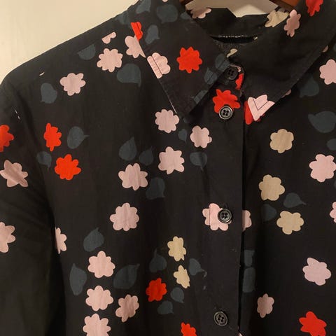 Har lommer og behagelig passform. 100 % bomull, knapt brukt, fremstår som ny.
