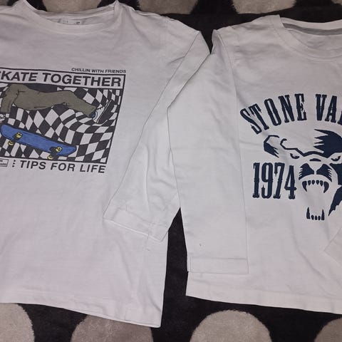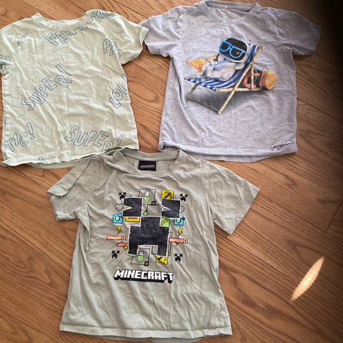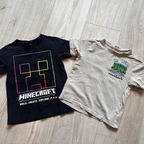T-skjorter med motiv fra Minecraft og Among us selges enten samlet eller hver for seg. 100kr per stk. kan sendes. Er pent brukte og i god stand.