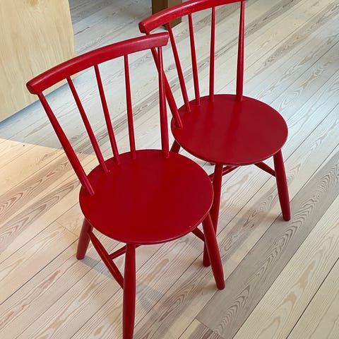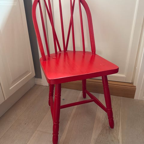 Pen solid, rød vintage trestol til salgs