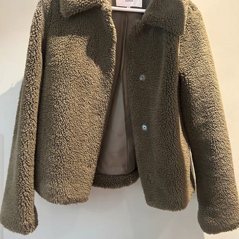 Denne jakken har alt. Myk, varm og komfortabel samtidig som den er fin! Lekker grønnfarge. «Usynlige» trykk-knapper. Str. M