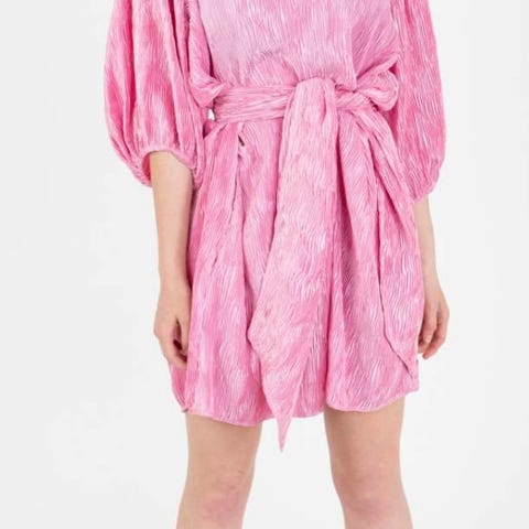 Ganni Cupro Puffed Dress Blå S