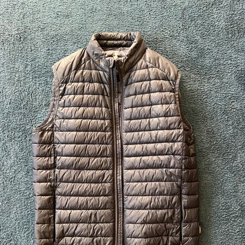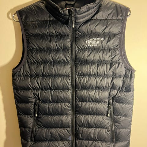 Vesten er rød og laget av materialer som er 100% animal free. Den har en glanset overflate og er designet for lett og varm bruk.