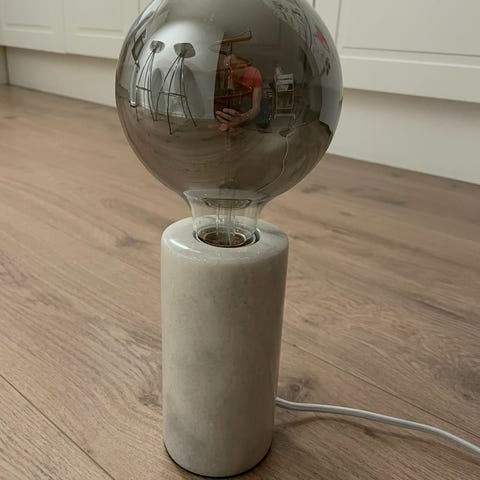 Marmorert lampeskjerm i vakre farger selges. Må limes litt øverst i kant. Superfin. Kan sendes