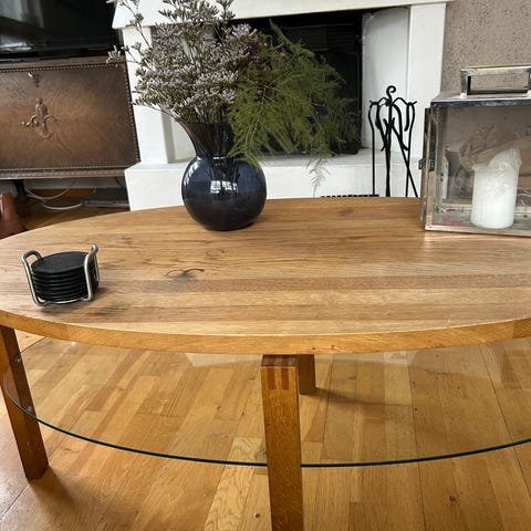 Rundt spisebord med glassplate