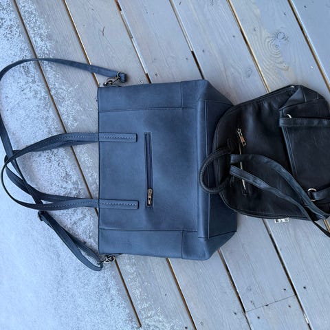 Pakke med en sekk og to vesker. Det er pennemerker i sekken. Se bilder.