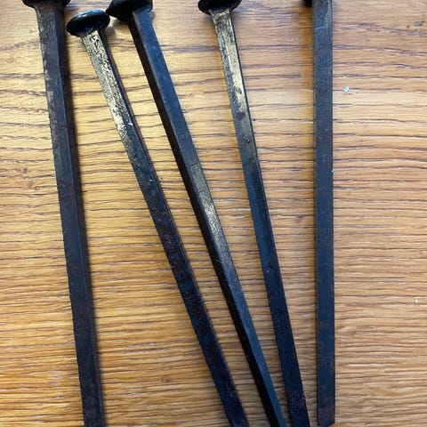 Dørbeslag-Stabelhengsler god brukt, men fortsatt fult brukbar for dem som restaurerer etter gammel byggeskikk. 5 stk mål se bilder.