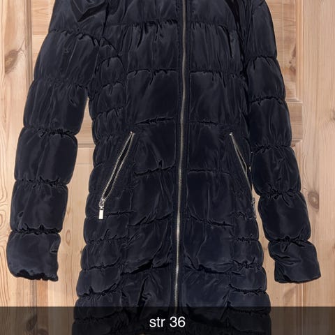 yttertøy i rød farge, størrelse 32 for kvinner. Jakken har glidelås foran og ribbestrikkede mansjetter og kant nederst. Materialet er lett og egnet som et mellomlag eller lettere yttertøy.