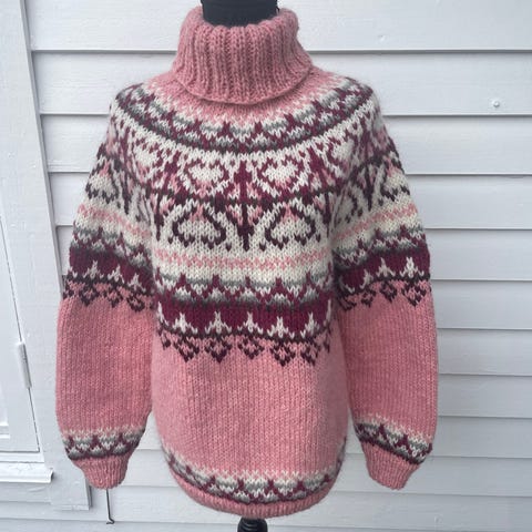 Genseren er strikket i str M, men om du liker den litt «chunky» passer den fint om en er str S