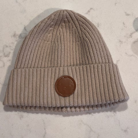Newbie Barne Lue i beige farge, størrelse 48/50 cm, egnet for barn i alderen 9-24 måneder. Luen er laget i ribbestrikket materiale som gir god passform og komfort.