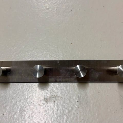 IKEA GRUNDTAL kleshenger laget av rustfritt stål med seks kroker. Designet for å henges over dør og egnet for oppbevaring av klær eller tilbehør i hjemmet.