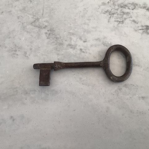 Diger, håndsmidd skiftenøkkel. L: 54 cm. Bredde åpning 6,5 cm, så denne er ikke for små skruer.