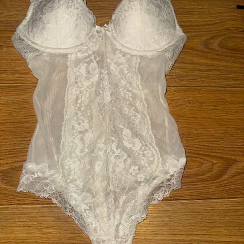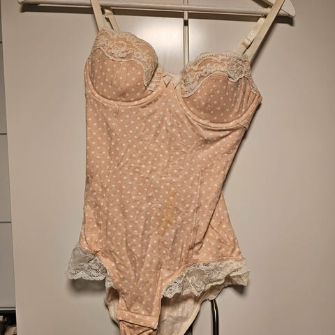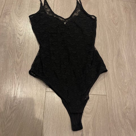 H&M Blondebody i rød farge, størrelse 36 for kvinner. Laget av materiale med blonder og med justerbare stropper. Designet for damebruk med en tettsittende passform.
