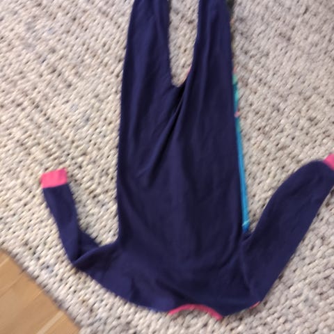 H&M flerfarget kosedrakt for barn i størrelse 134, unisex. Laget av mykt fleece-materiale med glidelås foran, lommer og hette med dekorative detaljer.