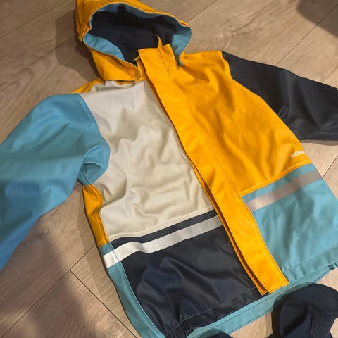 Regnjakken er brukt men i god stand