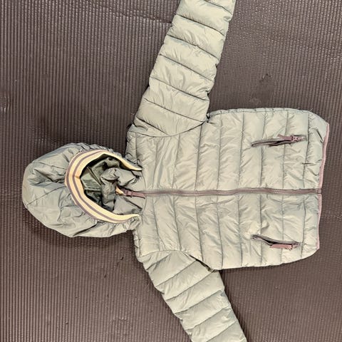 Fin Vindafjort dunjakke (tynn) str 14 år selges rimelig. Vendbar.
