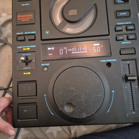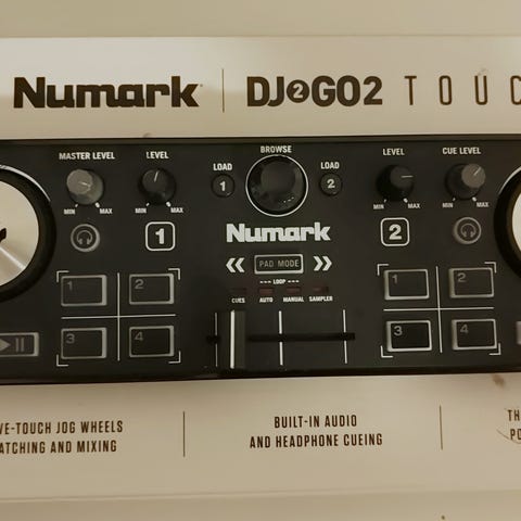 Numark iDJ Live DJ- Enhet med to jog-hjul, flere kontrollknapper og justerbare ratt for bass, diskant og volum. Designet for digital DJ-bruk med mulighet for å koble til iOS-enheter via USB.