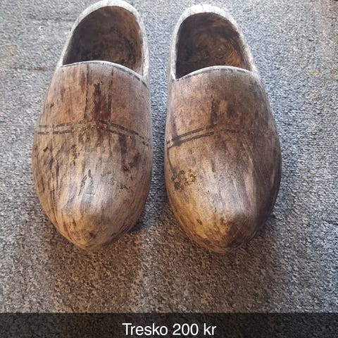 To par tresko, lengde ca 11 cm, høyde ca 4 cm.