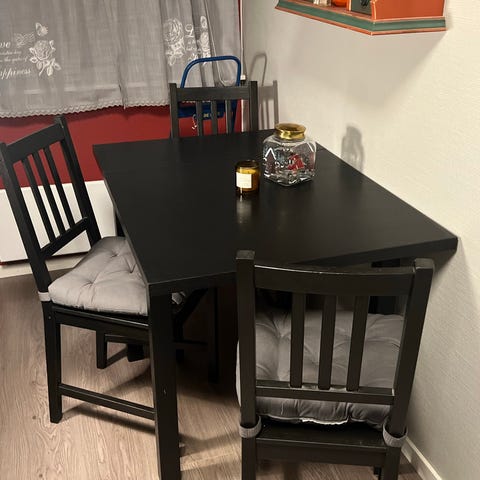 Lite pent kjøkkenbord med stoler, perfekt for små leiligheter