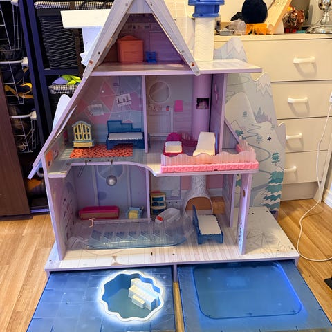 Her er det lys i møbler og lysslynge til å feste rundt huset, til og med peisen har lys 😊 det er badebasseng og skøyteis under hytta 🙂 Skiheis og isopor medfølger ikke.