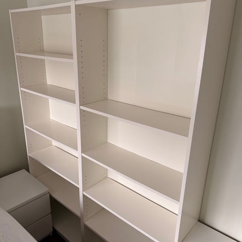 rødmalte ikea billy hyller 80 cm brede og 200 cm høye