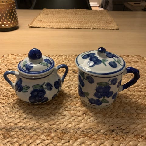 porselen sukkerkopp blå hvit servise blomster vintage kjøkken interiør shabby chic klassisk pynt gammel stil bavaria