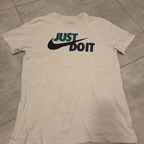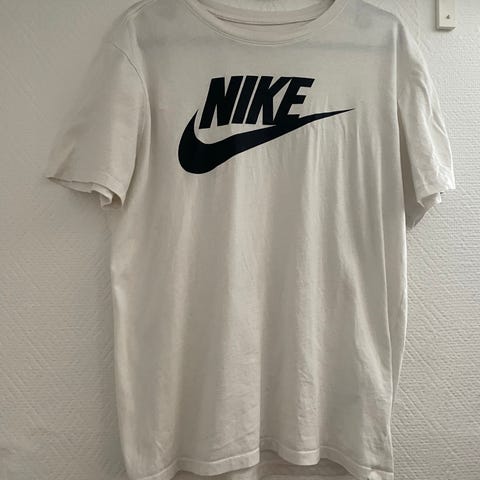 Nike The Nike Tee T-skjorte i størrelse M for menn. T-skjorten er hvit med et flerfarget Nike-logo trykk på brystet. Laget av bomullsmateriale, egnet for daglig bruk.