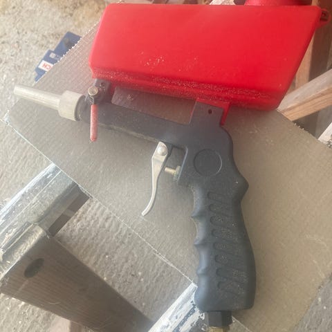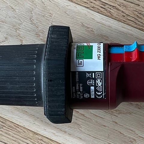 Selger en brukt varmluftpistol med piezo-tenning og ny gassflaske.