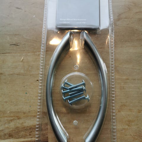 5 håndtak til skap eller skuffer selges. Ser ikke brukt ut. Ligner veldig på disse håndtakene, men er ikke sikker på om det er akkurat de samme: