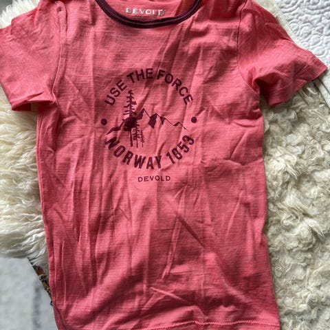 Selger Devold t-skjorte i ull, str 6 år. Meget pent brukt av et barn. Ingen fleker, ingen hull, ingen skader.